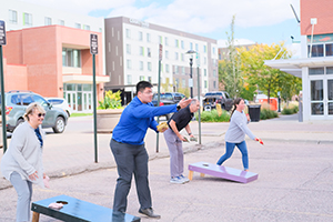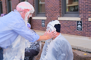 The businesses of the United Center in downtown Sioux City joined forces for the 10th year to bring awareness to the United Way of Siouxland's mission, while having a little fun at the same time. United Real Estate Solutions, CMBA Architects, Baird Wealth Management, along with Nichols, Rise & Company hosted a Cornhole Challenge on Wednesday, October 4th. As these companies launch their United Way campaigns for the year, the leaders of these organizations have added this extra incentive for employees considering donations to the United Way of Siouxland. This year's Cornhole Challenge Championship involved one team from each company battling it out for the building's traveling trophy and individual prizes. The championship round followed warm up rounds between companies. Besides bragging rights, the winners of the championship also got the opportunity to throw the first of several pies in the face of their company's CEO. The day offered up some good laughs for a great cause. United Real Estate Solutions is a proud supporter of the United Way of Siouxland and all that it does for those in need in the areas of health, education and financial stability. United Real Estate ranks in the Top 50 companies for donors locally and is the only Siouxland real estate company too provide that level of support.