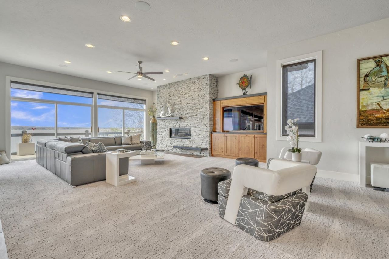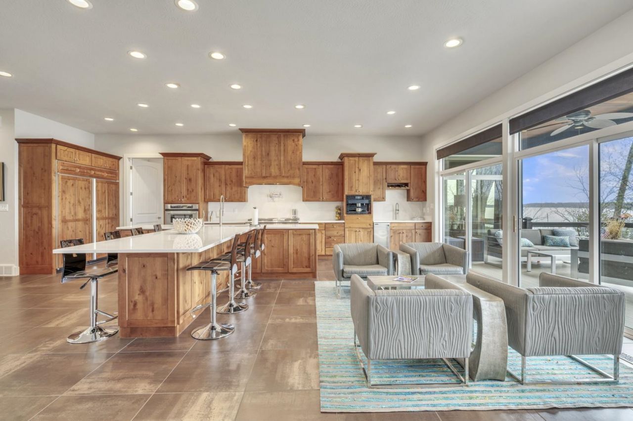 Stunning 5-bedroom, 3.5-bathroom home on prestigious Echo Bay. This gorgeous two-story home checks all the boxes, featuring an expansive living room, a large entertainment kitchen with a generous island, oversized windows, and a spa-like main floor primary suite. The home is filled with natural light and designed to capture incredible lake views, with expansive glass that creates a seamless connection between indoor and outdoor living. Positioned in a rare, private setting, the property offers 80 feet of lakeshore, beautifully landscaped with natural stone and retaining walls, along with an elevator down to the dock for easy access. The walkout lower level is ideal for guests, complete with a bar/kitchenette, a spacious family room, and large windows that showcase breathtaking views. With thoughtful updates, a well-designed layout, and stunning sunset views, this home delivers an exceptional lakeside living experience.