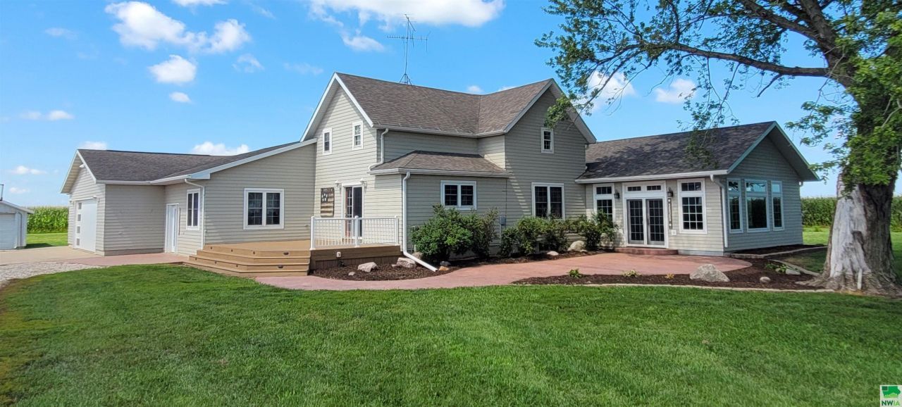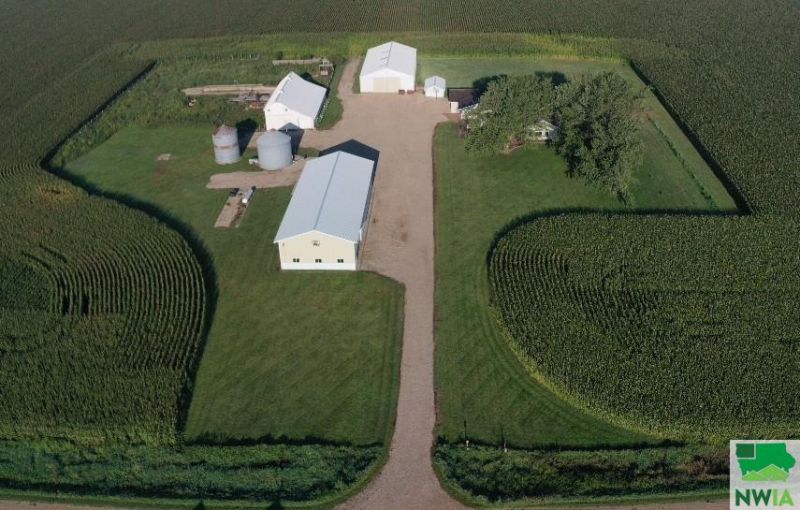 This large, well maintained acreage is located in the middle of the beautiful countryside in the southwest part of O`Brien County. Acreages of this caliber don`t come available very often. It`s located on two parcels for a total of 7.62 acres. The spacious one and one half story home features four bedrooms and four bathrooms. It`s had many updates over the past twenty years with a major addition in 2013. The master suite has it`s own great features to pamper yourself with. The master bath is equipped with a double sink vanity, large whirlpool tub and a separate walk~in shower. The heated tile floor is always be comfortable and give the room a cozy feel. The walk~in closet has a handy set of closet organizers to keep evrything orderly. Two nice sized bedrooms are found upstairs with a large fourth bedroom in the basement with an adjacent large bathroom. The home has several shared living areas to include an open layout between the kitchen, dining, family and living rooms. The home has warm comfortable feel with the knotty alder kitchen cabinets, crown molding and trim throughout a majority of the home. The large dining room on one end has a built in desk with cabinets, bookshelves and accent undercabinet lighting. The living room will be sure to impress many with it`s large size and large custom built~in bar. The bar area has a built~in sink, bar fridge, plenty of shelving, brand new bar stools and accent lighting. This will be make for a great place to host your social gatherings! The room also features large windows, a stone surround gas fireplace, and french doors leading to an exterior stamped concrete patio. Dont forget new double stall attached garage. Outside the buidings are in great shape & offer a new owner so much flexibilty. If you are in need of a shop with space to work on large trucks or farm implements then your set! The property has a heated 40` x 100` shop built in 2017. There also is a 48` x 90` machine shed, 72` x 38` barn and a 14` x 24` garag.